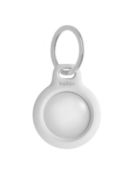 O Suporte Seguro com Chaveiro Belkin para Apple AirTag oferece proteção adicional e praticidade ao seu rastreador.  Design compacto e elegante em branco.