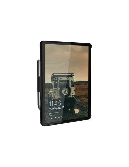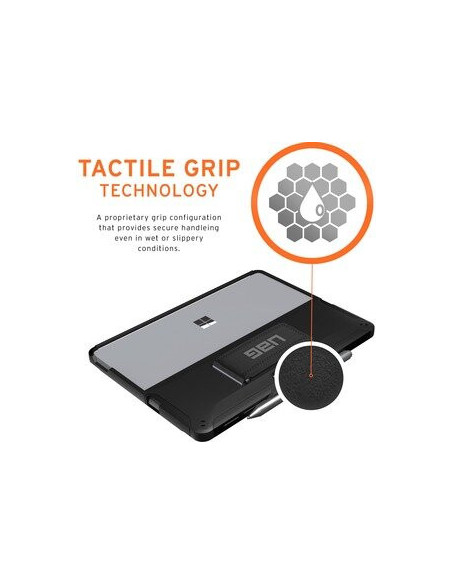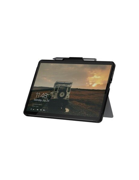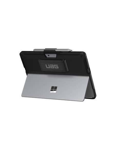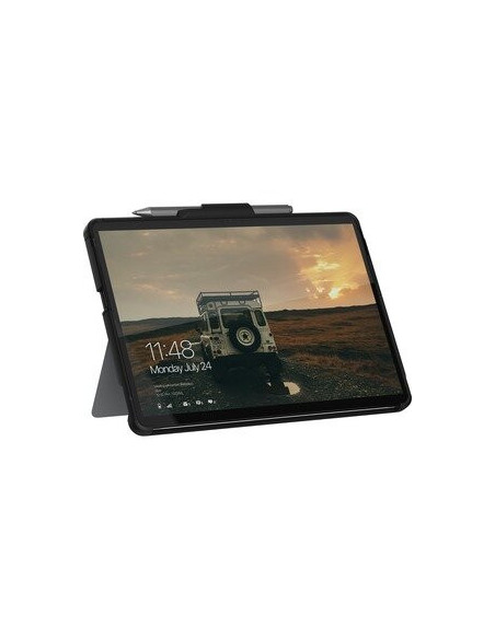 A capa UAG Scout para Microsoft Surface Go oferece proteção robusta contra impactos e quedas. Fabricada em TPU, inclui uma alça para transporte e é compatível com a Surface Pen.  Design elegante e funcional, ideal para proteger o seu tablet.
