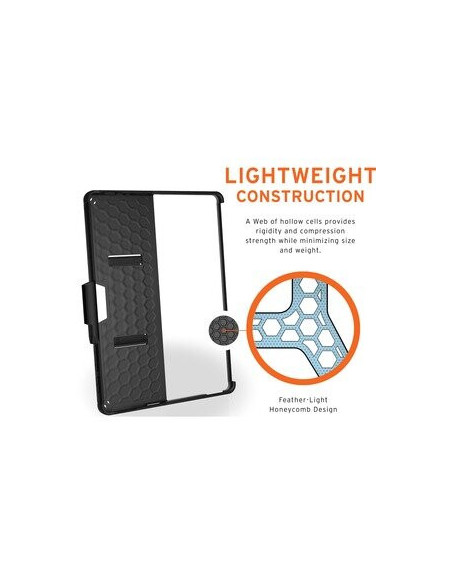 O design da capa UAG Scout é cuidadosamente pensado para não comprometer o acesso às portas e funcionalidades do tablet. Todos os acessos e botões permanecem acessíveis, garantindo que pode carregar o seu dispositivo, utilizar o áudio e as câmeras sem remover o tablet da capa. O design combina proteção e funcionalidade, sem comprometer a usabilidade do dispositivo.