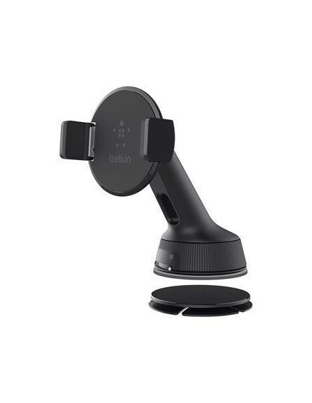Suporte universal para smartphone Belkin, ideal para parabrisas ou painel. Ajustável a smartphones até 6 polegadas. Rotação de 360 graus e inclinação para melhor visualização. Sistema de gestão de cabos. Cor preta. Garantia de 24 meses.