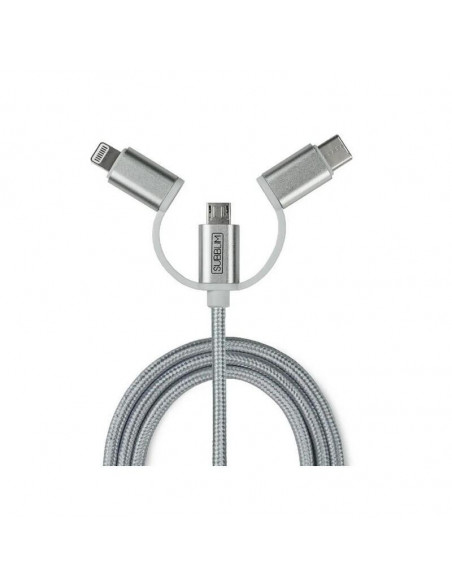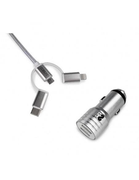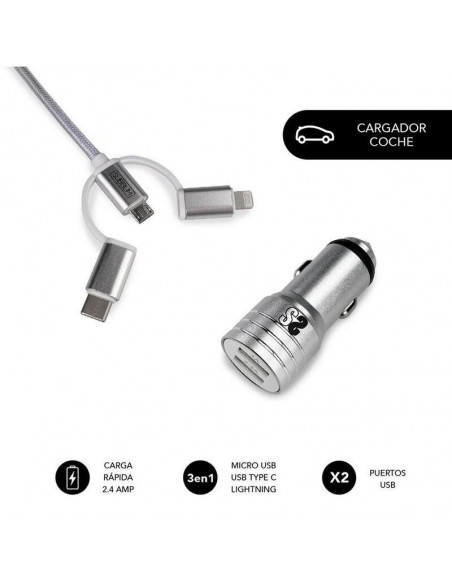 Carregador de Carro Subblim SUB-CHG-4CC001: 2 USB, 2.4A, Cabo 3 em 1, Prata