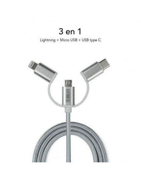 • Cabo 3 em 1 incluído (Micro USB, USB-C, Lightning)