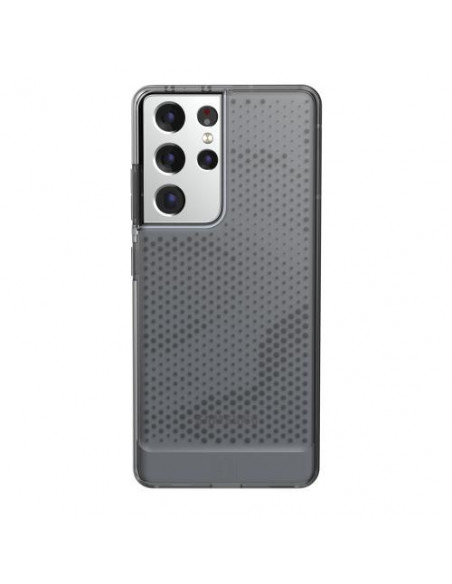 A capa UAG Lucent para Samsung Galaxy S21 Ultra oferece proteção robusta num design translúcido.  Feita para o Galaxy S21 Ultra 5G, esta capa mantém o aspeto elegante do seu smartphone enquanto o protege contra quedas e riscos.  O design translúcido e cinzento permite que a cor do seu telemóvel fique visível.