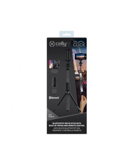O suporte de selfie Bluetooth Celly CLICKPLUSPODBK é uma solução versátil e prática para tirar fotos e gravar vídeos com o seu smartphone. Compatível com dispositivos até 6,5 polegadas, este suporte oferece um alcance extra e estabilidade para capturar imagens e vídeos de alta qualidade. O seu design em metal preto confere-lhe durabilidade e um aspeto sofisticado. A conectividade Bluetooth simplifica o processo de utilização, permitindo controlar remotamente o seu smartphone. O alcance extra oferecido pelo suporte permite tirar fotografias de grupo ou capturar paisagens com mais facilidade. A sua construção em metal garante estabilidade, evitando fotos ou vídeos tremidas, mesmo em situações menos estáveis. O design elegante e discreto integra-se perfeitamente com diferentes estilos e ambientes. Para mais detalhes sobre as especificações técnicas, como dimensões e peso, por favor, consulte a ficha técnica em [https://iland.sbs/DataSheets/?idarticolo=CLICKPLUSPODBK](https://iland.sbs/DataSheets/?idarticolo=CLICKPLUSPODBK). A garantia de 36 meses assegura a qualidade e durabilidade deste produto. Este suporte é perfeito para vlogueiros, entusiastas de fotografia e qualquer pessoa que queira tirar fotos e vídeos de alta qualidade com o seu smartphone, com maior alcance e estabilidade. O design robusto garante que o suporte aguenta o uso frequente, e a conectividade Bluetooth permite um controlo intuitivo e sem fios. A compatibilidade com uma vasta gama de smartphones torna-o uma solução ideal para diferentes utilizadores. A sua construção em metal não só proporciona resistência, mas também um aspeto elegante que complementa qualquer smartphone.