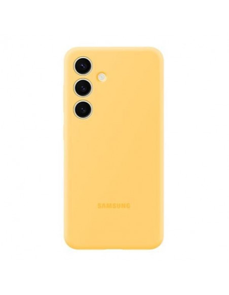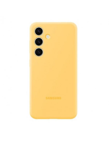 Capa de silicone amarela para Samsung Galaxy S24+. Oferece proteção contra riscos e impactos. Design elegante e ajuste perfeito. Material: Silicone. Garantia de 24 meses.