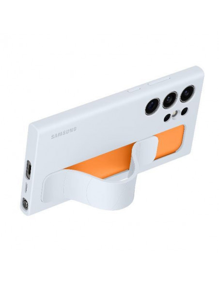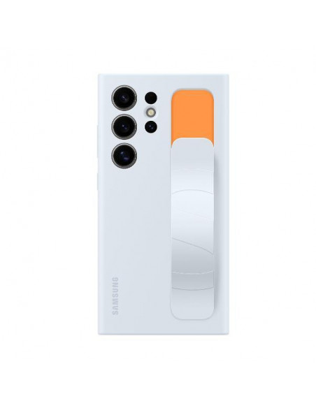 Capa com suporte integrado para Samsung Galaxy S24 Ultra, na cor azul claro.  Oferece proteção e funcionalidade extra.  Material: Silicone.  Design elegante.  Garantia de 36 meses.