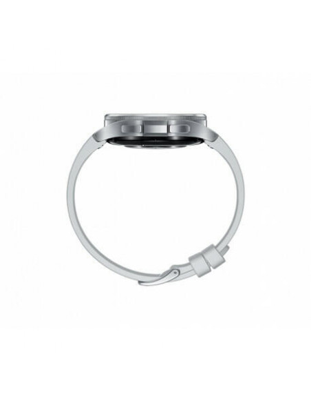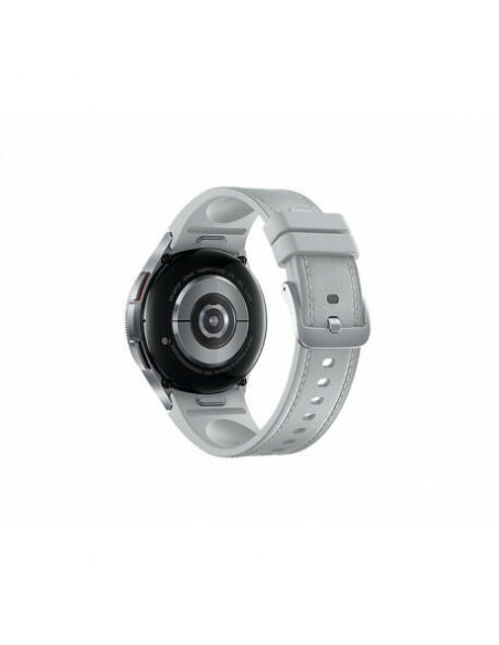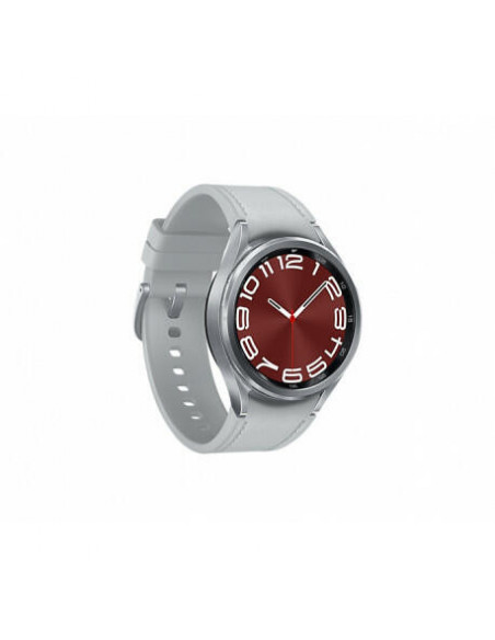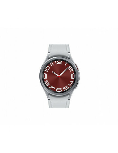 Samsung Galaxy Watch6 Classic SM-R955F. Tamanho do ecrã na diagonal: 3,3 cm (1.3"), Tecnologia de apresentação: Super AMOLED, Resolução: 432 x 432 pixels, Ecrã táctil. Frequência do processador: 1,4 MHz, Capacidade RAM: 2000 MB, Memória flash: 16 GB. Wi-Fi. GPS. Capacidade da bateria: 300 mAh. Peso: 52 g. Cor da pulseira: Prateado. Sistema operativo instalado: Wear OS