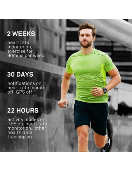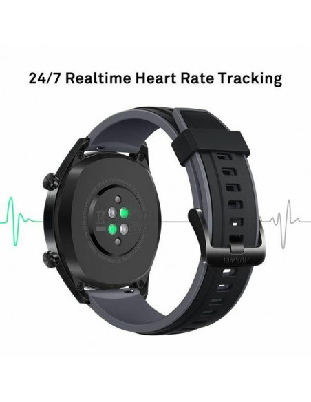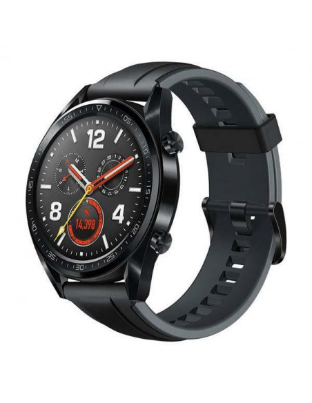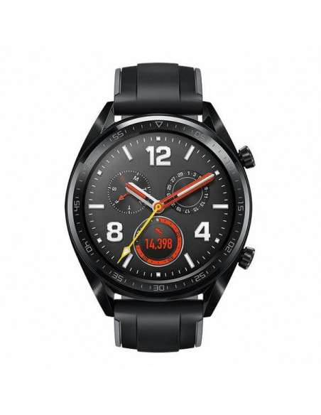 Huawei Watch GT. Diagonal de la pantalla: 3,53 cm (1.39´´), Tipo de visualizador: AMOLED, Resolución de la pantalla: 454 x 454 Pixeles, Pantalla táctil. Capacidad de RAM: 16 MB, Memoria flash: 0,128 GB. GPS (satélite). Peso: 46 g. Humedad: resistente al agua hasta: 50 m, Material de la banda: Silicona, Color de banda: Negro