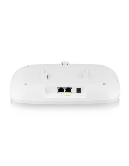 Do ponto de vista da conectividade física, o Zyxel WBE630S possui 2 portas Ethernet LAN (RJ-45), facilitando a conexão de dispositivos com fio à rede. A tecnologia PoE (Power over Ethernet) simplifica a instalação, fornecendo energia através do cabo Ethernet, eliminando a necessidade de uma tomada elétrica próxima. O design compacto e elegante, na cor branca, integra-se facilmente em qualquer ambiente.