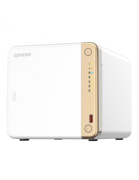 O NAS QNAP TS-462-4G oferece armazenamento em rede eficiente com processador Intel dual-core, 4 baias, conectividade 2.5GbE, slots M.2 e PCIe.  Ideal para utilizadores domésticos e pequenas empresas, permite backup, partilha de ficheiros e streaming multimédia.