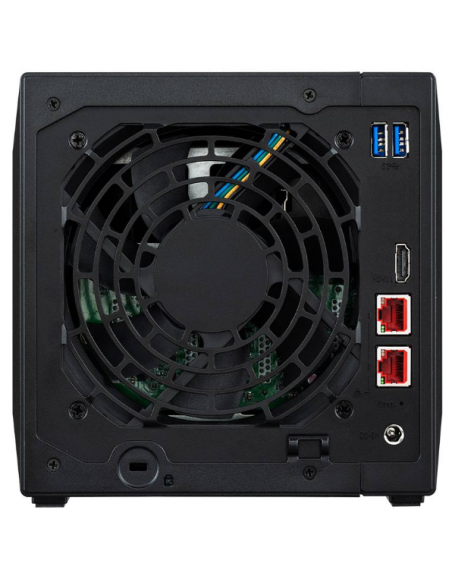 No seu coração encontra-se um processador Intel Celeron N5105 quad-core, que garante um desempenho fluido e eficiente na gestão de múltiplas tarefas, mesmo sob carga pesada. A capacidade de resposta do sistema é otimizada pelos 4GB de memória RAM DDR4, expansível até 16GB, permitindo que o AS5404T execute aplicações e tarefas simultâneas sem perda de desempenho. As 4 baias para discos de 3,5" SATA permitem uma grande capacidade de armazenamento, podendo ser configuradas em RAID para garantir a redundância de dados e proteger contra perda de informação.