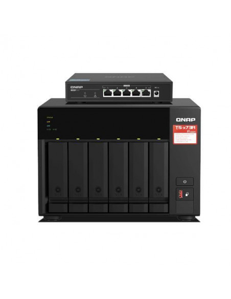 O QNAP TS-673A-SW5T é um NAS 2.5GbE multitarefa com processador AMD Ryzen?, ideal para pequenas empresas e utilizadores domésticos. Oferece 6 baias de expansão, 4 portas USB e conectividade Gigabit Ethernet. Suporta RAID e diversos protocolos de rede. A sua capacidade de expansão permite aumentar o armazenamento de acordo com as suas necessidades.