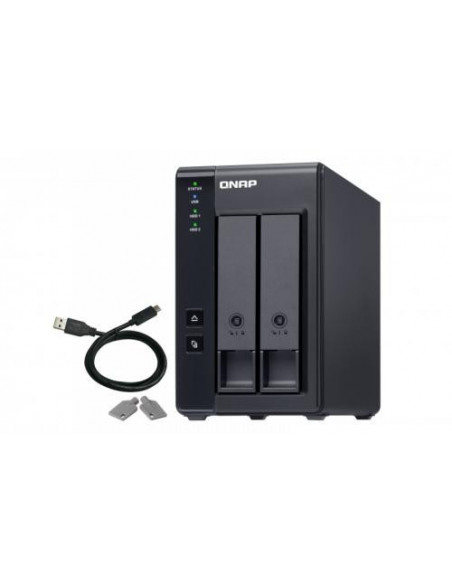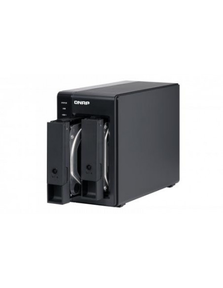 A unidade de expansão NAS QNAP TR-002 é uma solução de armazenamento externa para aumentar a capacidade dos seus NAS QNAP compatíveis. Com duas baias para discos de 2,5" ou 3,5", permite-lhe adicionar mais espaço de armazenamento de forma simples e eficiente. Suporta RAID 0, 1 e JBOD, e inclui indicadores LED para monitorizar o estado do sistema e discos. Design compacto e elegante em preto.