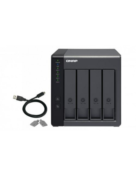 * **Expansão da capacidade do NAS:** Conecte a TR-004 ao seu NAS QNAP e use o Administrador de Armazenamento e Instantâneos para configurar e gerir facilmente a sua expansão de armazenamento. A TR-004 suporta as funções de armazenamento e gestão de ficheiros do NAS QNAP, incluindo a criação de grupos de armazenamento, pesquisa de ficheiros com Qsirch e organização de ficheiros com Qfiling.