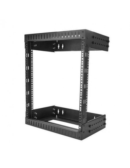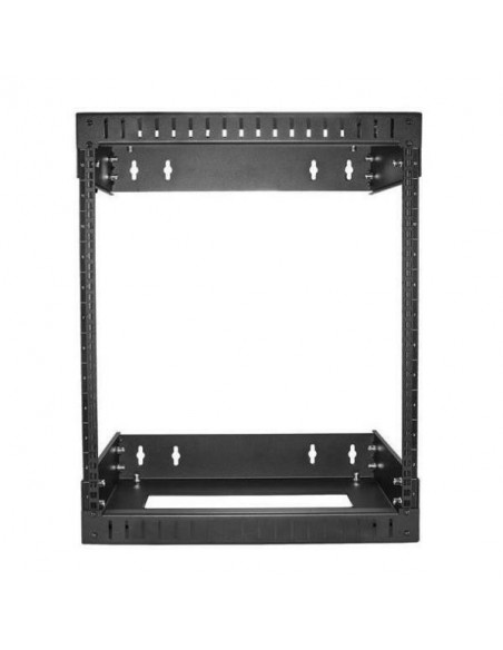 Bastidor de parede StarTech RK12WALLOA, com capacidade para 12 unidades. Construído em aço, na cor preta. Dimensões: 650mm (Altura) x 508mm (Largura) x 484mm (Profundidade). Peso: 14,6kg.  Não inclui colunas nem base.