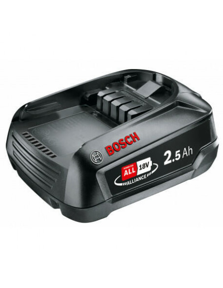 Bosch 1 600 A00 5B0. Tipo de produto: Bateria, Tecnologia da bateria: Ião-lítio, Capacidade da bateria: 2,5 Ah. Largura da bateria: 11,4 cm, Profundidade da bateria: 8,1 cm, Altura da bateria: 4,5 cm. Comprimento da embalagem: 158 mm, Profundidade da embalagem: 152 mm, Altura da embalagem: 95 mm. Tipo de fonte de alimentação: Bateria. Quantidade por embalagem de envio: 1 unidade(s), Quantidade por embalagem principal: 33 unidade(s), Produtos por camada de palete: 198 unidade(s)