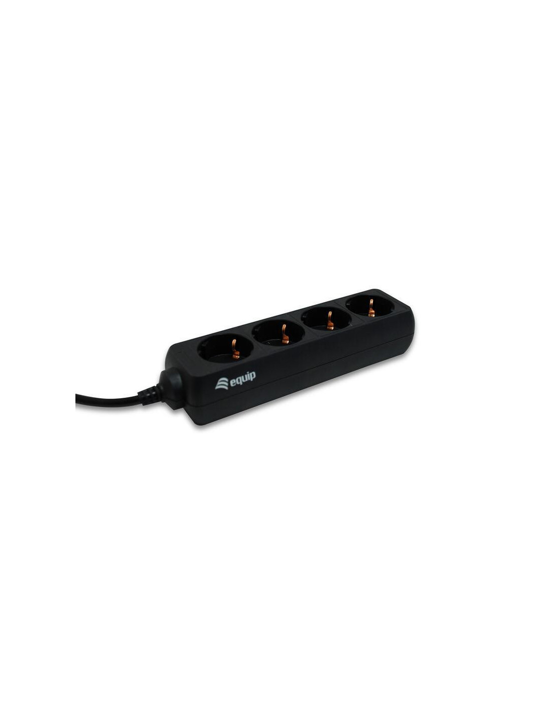 Regleta EQUIP 333281 com 4 tomadas e adaptador IEC-Schuko. Ideal para conectar múltiplos dispositivos com segurança e facilidade. Oferece uma potência máxima de 2200W.