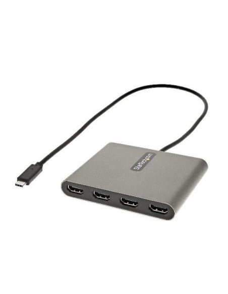 Adaptador StarTech USBC2HD4 que expande as capacidades de visualização de dispositivos USB-C para quatro portas HDMI independentes.  Oferece alta velocidade de transferência de dados USB 3.2 Gen 1 SuperSpeed (5 Gbps). Design compacto e cor cinza. Garantia de 24 meses.