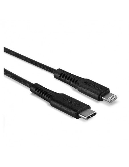Cabo USB-C para Lightning da Lindy, reforçado e com 0,5 metros de comprimento. Ideal para carregar e transferir dados entre dispositivos com porta USB-C e Lightning.  Construção robusta para maior durabilidade. Inclui conectores macho em ambas as extremidades.