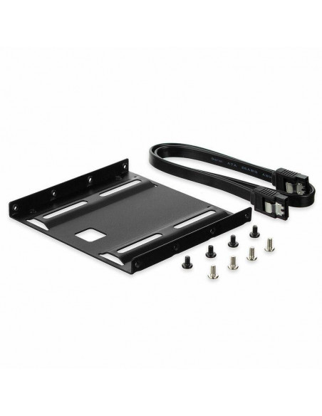 Kit adaptador Ewent EW7007 para HDD/SSD de 2,5" em baias de 3,5". Inclui parafusos e cabo SATA III de 50cm. Design simples e funcional para adaptação de discos rígidos 2.5" em baias de 3.5".