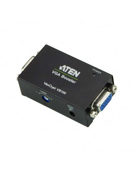 O amplificador VGA ATEN VB100 estende o alcance do sinal VGA até 70m, mantendo a qualidade de imagem.  Compacto e fácil de instalar, garante imagens nítidas mesmo em distâncias longas.