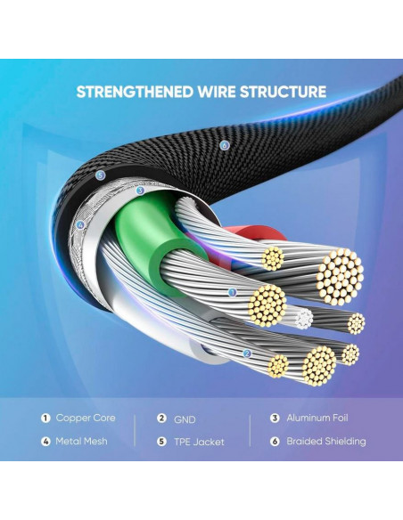 É construído para evitar dobrar o cabo, proteger o conector e a parte externa do cabo, aumentar a vida útil.
