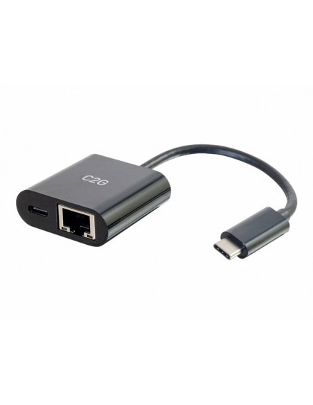 C2G USB C to Ethernet Adapter With Power Delivery - Black - Adaptador de rede - USB-C - Gigabit Ethernet x 1 - preto
