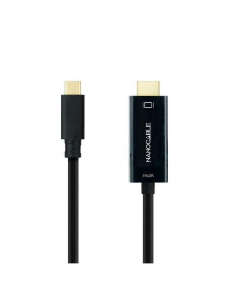 Cabo conversor Nanocable USB-C para HDMI, com 3 metros de comprimento, ideal para conectar dispositivos USB-C a monitores ou televisores HDMI. Suporta resolução 4K a 30Hz.  Construção robusta e fiável.
