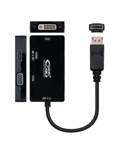 Adaptador DisplayPort Nanocable 3 em 1: DisplayPort para VGA/DVI/HDMI 4K