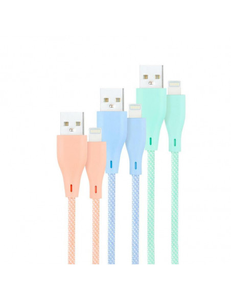Cabo Nanocable, Pack de 3, USB-A para Lightning, 1m, Cores Pastel