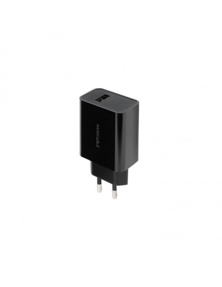 O carregador Nanocable USB de parede oferece uma carga eficiente para os seus dispositivos.  Com uma saída de 5V/2.1A, garante uma carga rápida e segura.  Design compacto e prático, ideal para uso doméstico ou em viagem.  Disponível na cor preta.