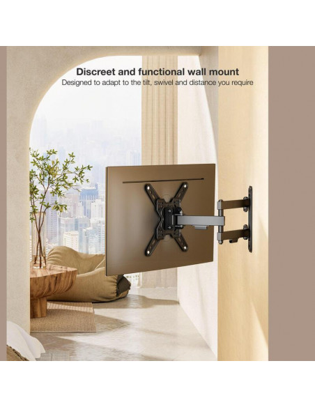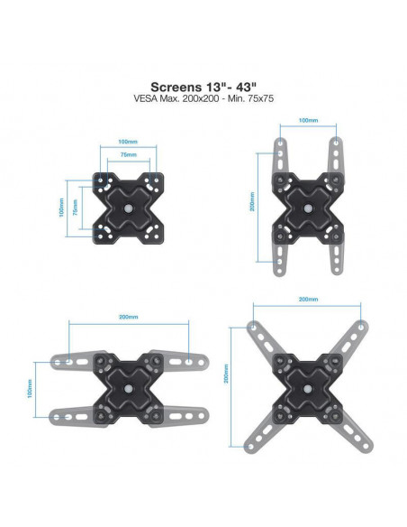 Suporte de Parede Tooq LP1345TN-B, Ecrãs 13-43?, Giratório e Inclinável, Preto