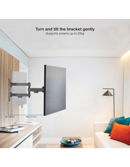 O suporte de parede Tooq LP1345TN-B oferece uma solução versátil e prática para instalar ecrãs de 13 a 43 polegadas.  Este suporte articulado permite a inclinação, rotação e ajuste de altura, proporcionando uma visualização otimizada independentemente do ângulo.  Concebido para suportar um peso máximo de 20 kg, este suporte é robusto e confiável, garantindo a estabilidade do seu ecrã.