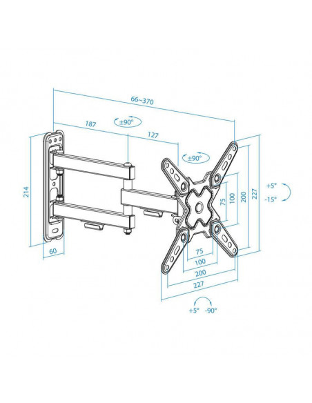 O suporte de parede Tooq LP1345TN-B é ideal para ecrãs de 13 a 43 polegadas. Permite inclinação, rotação e ajuste de altura, adaptando-se às suas necessidades. Suporta até 20kg e é compatível com VESA 200x200mm.