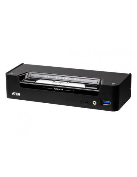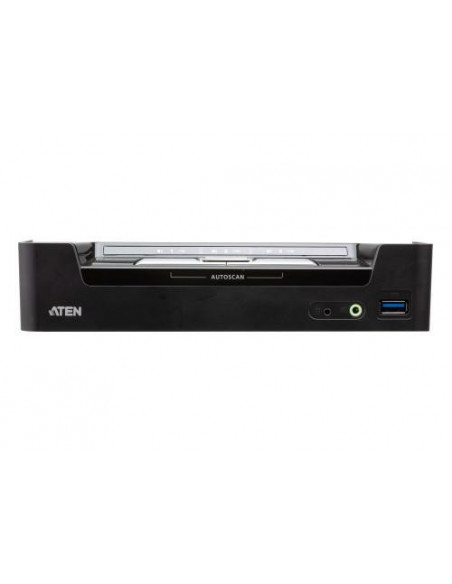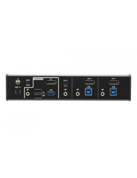 O switch KVM híbrido Aten CS1953-AT oferece uma solução eficiente e versátil para gerir múltiplos computadores a partir de um único console.  Este switch permite controlar até três computadores com um único teclado, rato e monitor, utilizando as ligações USB-C e DisplayPort.  A sua alta resolução de 4K UHD (4096 x 2160 a 60Hz) garante uma qualidade de imagem superior. A Aten incluiu no pacote uma ampla seleção de cabos para assegurar uma instalação imediata. O pacote inclui: 1 switch KVM CS1953, 2 cabos DisplayPort 1.2, 2 cabos USB 3.0 (Tipo A a Tipo B), 1 cabo USB-C, 3 cabos de áudio, 1 selector de porta remoto, 1 manual de instruções e um adaptador de corrente opcional (0AD8-8012-70MG).  Este conjunto permite uma configuração completa e sem complicações.  O switch suporta HDCP e inclui funcionalidades como acesso directo a teclas, um sistema de firmware actualizável e indicadores LED. O seu design robusto, em metal e plástico, garante a sua durabilidade e resistência. Mais detalhes sobre as especificações: