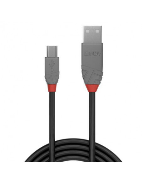 Cabo USB 2.0 Lindy 36724, com conectores USB Tipo A (macho) para Mini-USB Tipo B (macho), com 3 metros de comprimento. Ideal para transferência de dados entre dispositivos.  Construção robusta e materiais de qualidade para durabilidade e desempenho confiável. Cor preta.