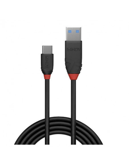 Cabo USB 3.2 Lindy de alta velocidade, conectando USB-A a USB-C. Comprimento de 1,5 metros e taxa de transferência de até 10 Gbps, ideal para transferência rápida de dados. Conector USB-A macho e USB-C macho.  Disponível em preto.