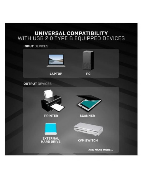 O cabo USB 2.0 da Lindy (MPN: 36675) é uma solução prática e fiável para conectar os seus dispositivos USB a um computador ou hub USB. Com um comprimento generoso de 5 metros, este cabo oferece grande flexibilidade na colocação dos seus dispositivos, eliminando as limitações impostas por cabos mais curtos. Os conectores USB Tipo A e Tipo B, ambos machos, garantem compatibilidade com uma vasta gama de equipamentos, incluindo impressoras, scanners, discos rígidos externos e muitos outros dispositivos.