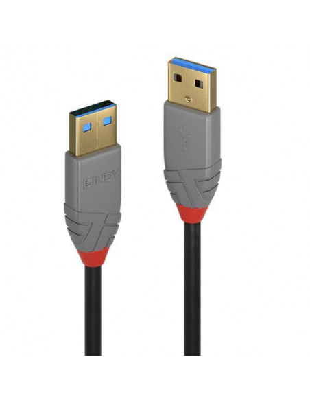 Cabo USB 3.2 Lindy de alta velocidade, 0,5m, preto. Conectores Tipo A Macho em ambas as extremidades. Ideal para transferência de dados rápida e eficiente.