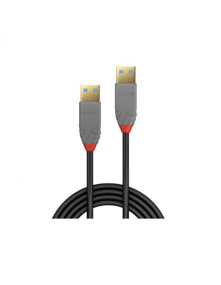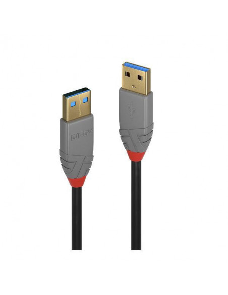 Cabo USB 3.2 Tipo A da Lindy com 5 metros de comprimento e velocidade de transferência de 5Gbps.  Conectores macho em ambas as extremidades, design elegante em antracite. Ideal para transferência de ficheiros grandes.