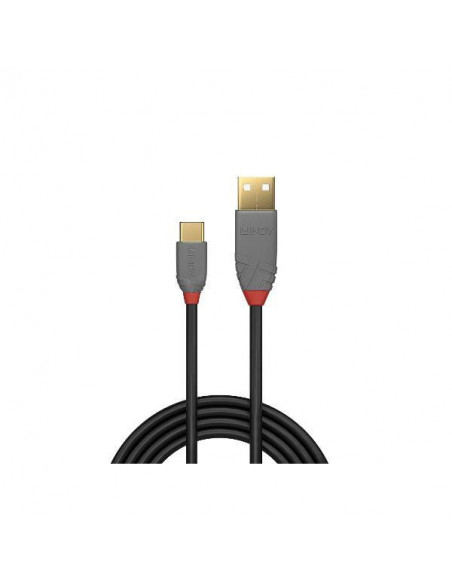 Cabo USB 2.0 da Lindy com 1 metro de comprimento, com conectores USB 2.0 Tipo A e USB Tipo C. Ideal para conectar dispositivos com estes padrões. Permite transferência de dados e carregamento de dispositivos compatíveis. Construção robusta e cor antracite.
