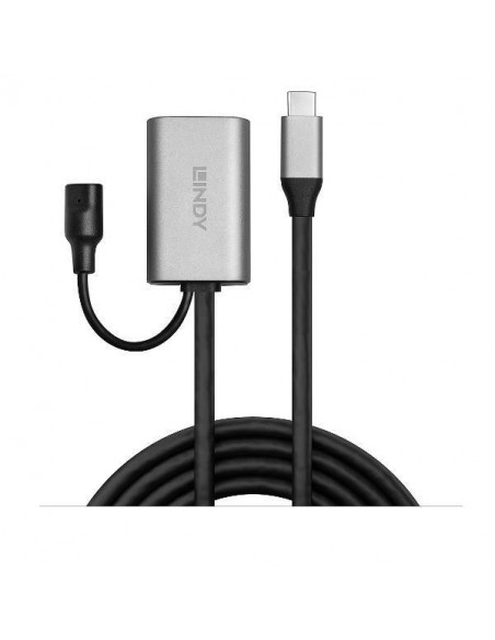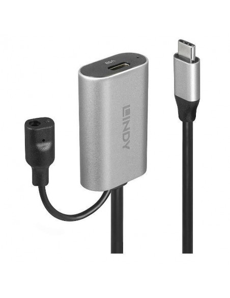Extensor ativo USB-C para USB-C Lindy de 5 metros, ideal para expandir a conectividade USB-C.  Permite a conexão de dispositivos USB-C a uma distância de até 5 metros.