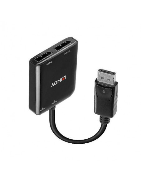 Concentrador MST DisplayPort 1.2 Lindy 38430, permite ligar um DisplayPort a duas portas DisplayPort. Comprimento de 25cm. Ideal para conectar múltiplos monitores. Construção robusta. Garantia de 24 meses.