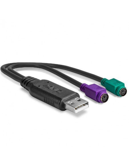 Adaptador Lindy que converte uma porta USB 3.0 para uma porta PS/2 fêmea. Ideal para conectar teclados e ratos PS/2 a computadores com apenas portas USB.