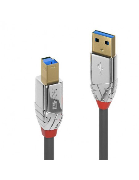 Cabo USB 3.0 Lindy de alta velocidade, conectando dispositivos USB Tipo A a B. Oferece transferência de dados até 5 Gbps numa distância de 2 metros. Construção robusta e fiável. Inclui: