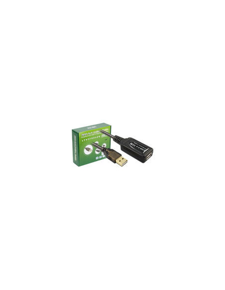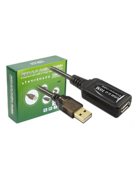 Cabo Extensão USB Activo Macho - Fêmea com 10 metros de comprimento. Largura de banda: 480 Mbps. Cor Preto.