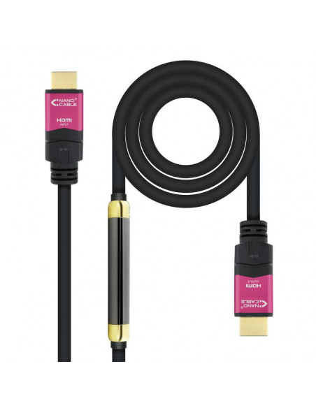 O cabo HDMI Nanocable 10.15.3725 é um cabo de alta velocidade com 25 metros de comprimento, ideal para longas distâncias. Inclui um repetidor para amplificar o sinal.