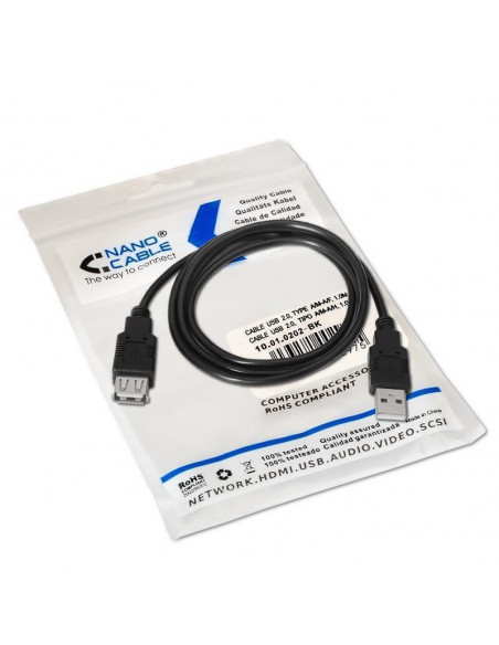 Cabo Nanocable USB 2.0, Macho-Fêmea, 1m, Preto, 10.01.0202-BK