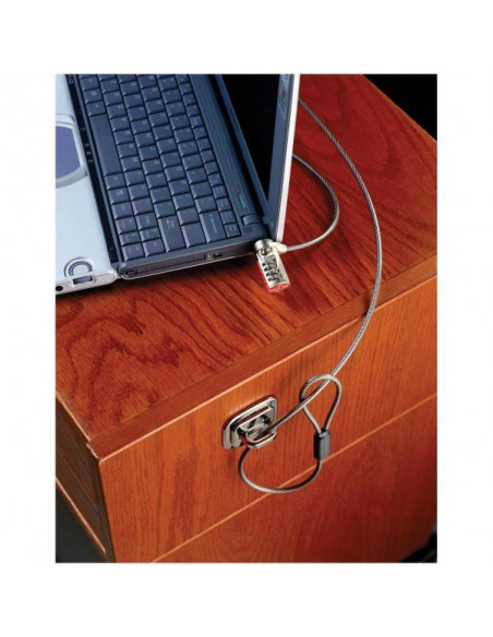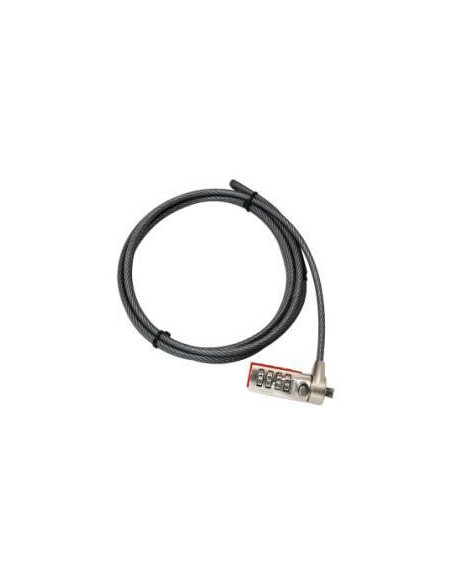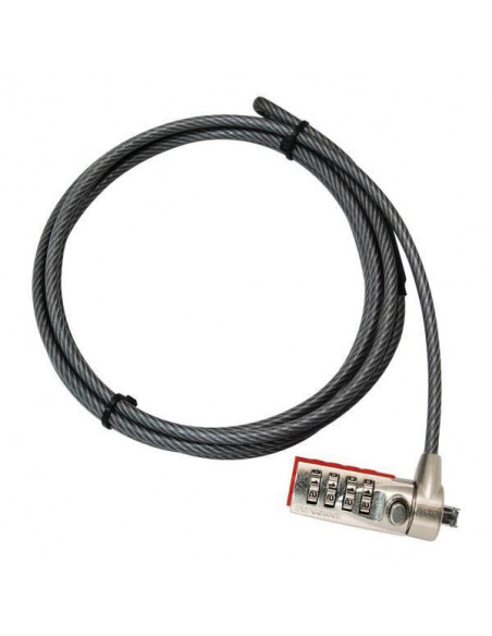 Este cabo de segurança destaca-se pela sua construção robusta. O cabo de aço galvanizado de 2,1 metros de comprimento garante uma fixação segura a objetos inamovíveis, como mesas ou estruturas fixas, dificultando o acesso não autorizado ao seu portátil. O design permite enrolar o cabo em torno do objecto de fixação escolhido para maior segurança. O seu encaixe é compatível com a maioria dos portáteis com ranhura de segurança padrão.