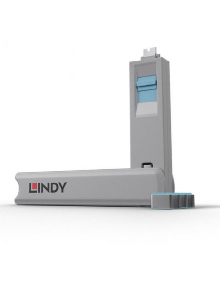 Cabo de segurança Lindy 40465 para proteção de dispositivos. Sistema de bloqueio com cadeado e chave. Protege até 10 unidades. Material: Plástico, cor cinzenta. Para mais informações, consulte a ficha técnica.